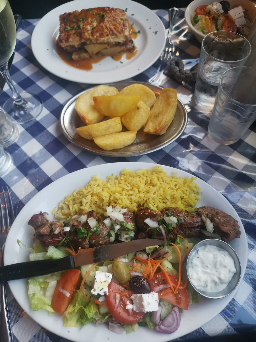 The Grilled Sardines are another highlight-fresh, smoky, and served with a side of simply dressed salad and lemon. For something heartier, the Kleftiko, a slow-cooked lamb dish, falls apart with just a touch of the fork, soaking up every bit of the rich, herbed gravy. And let’s not forget the Moussaka, a staple here, baked to a golden top with tender layers of aubergine, spiced mince, and creamy béchamel.