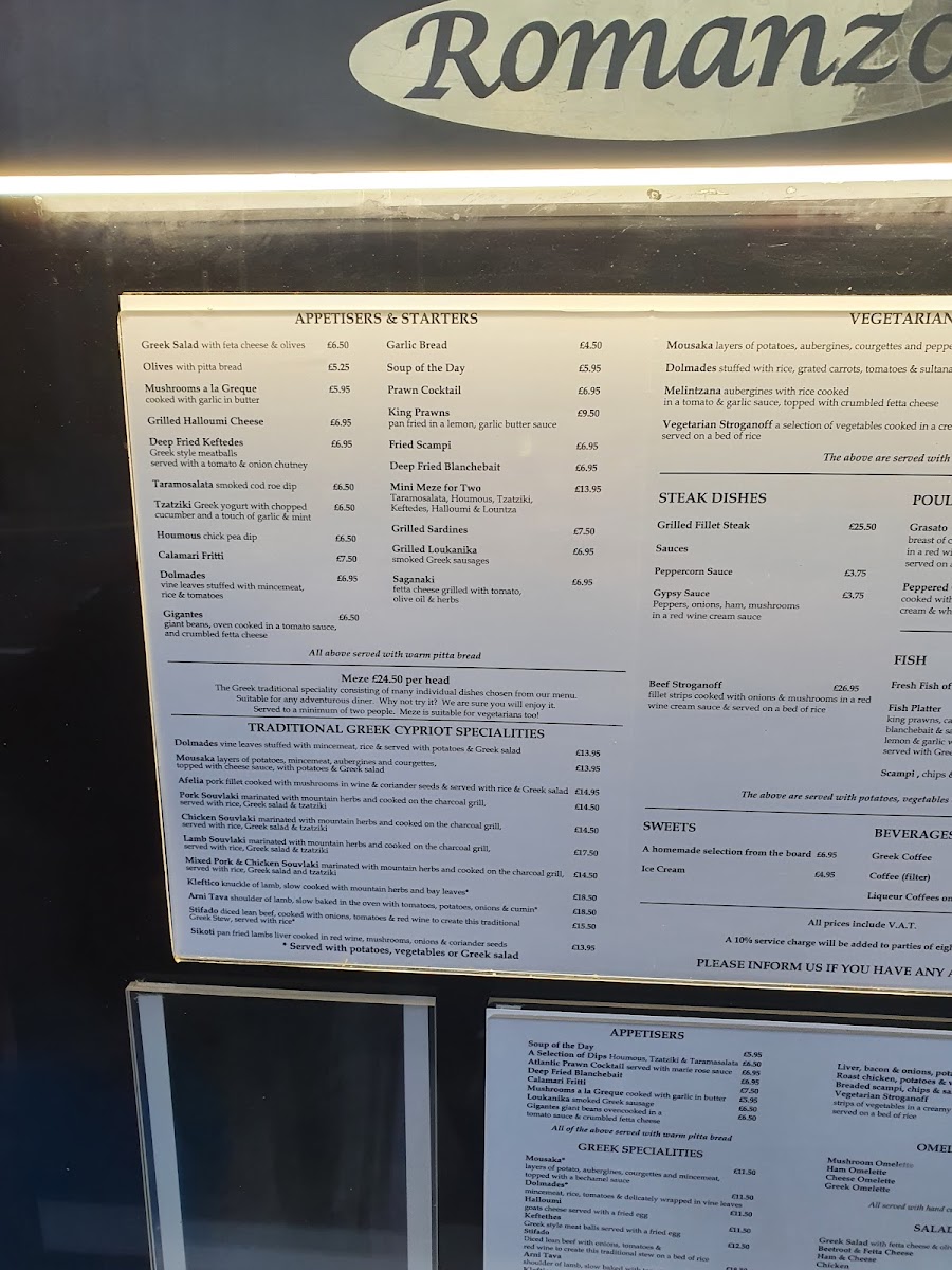 Nestled in the heart of Westbourne, Romanzo delivers a warm, authentic Greek dining experience that stands out in Bournemouth’s vibrant culinary scene. The Romanzo Menu offers a rich variety of traditional Greek dishes crafted with quality ingredients and served with genuine hospitality. Located at 87 Poole Rd, this family-run restaurant manages to strike the perfect balance between rustic charm and refined Mediterranean flavors.